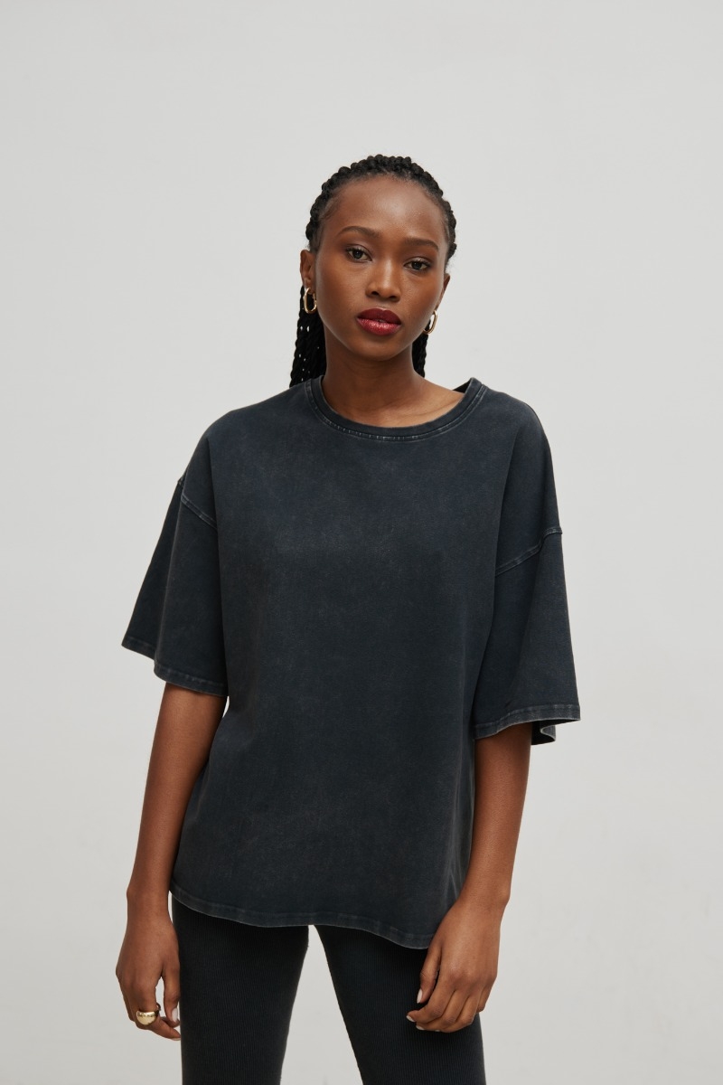 Klasyczny t-shirt o luźnym kroju w kolorze spranej szarości. Fason o prostym, pudełkowym kroju ze znacznie obniżoną linią ramion. Rękaw szeroki, przedłużony. Dekolt niewielki, okrągły . Luźna, inspirowana męską garderobą koszulka, która pasuje niemalże do każdego typu sylwetki - świetnie tuszuje wszelkie niedoskonałości i daje możliwość noszenia zarówno w luźnej formie, jak i delikatnie wpuszczonej do spodni, czy spodenek. Gwarantuje komfort i stylowy wygląd. Dostępny również w innych kolorach. Modelka ma 169 cm wzrostu prezentuje rozmiar S. Skład: 100% Bawełna