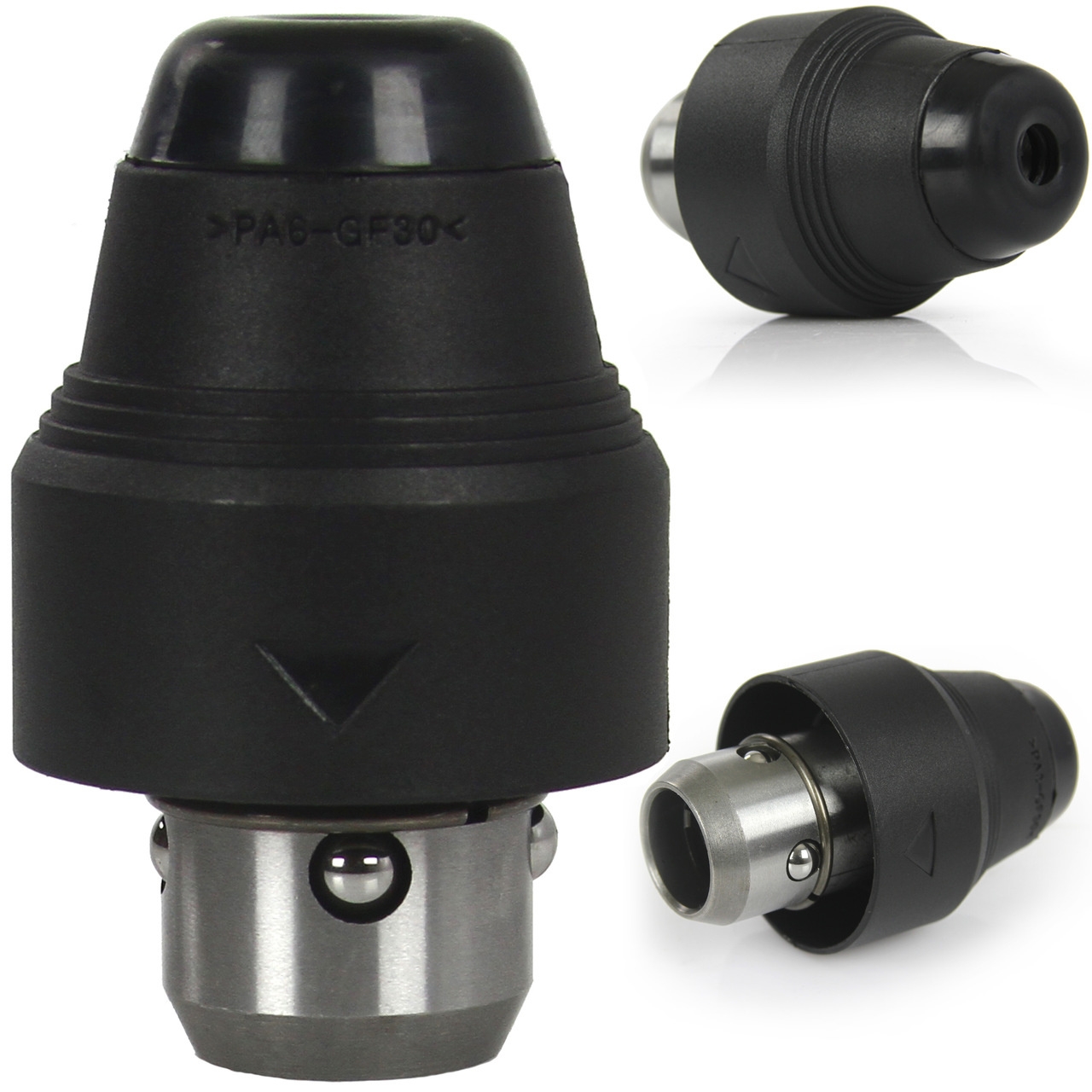 Uchwyt przeznaczony jest do wiercenia udarowego oraz do kucia z wykorzystaniem wierteł i dłut z mocowaniem SDS-Plus w takich materiałach jak: beton, beton zbrojony, kamień, cegła, tynk, itp