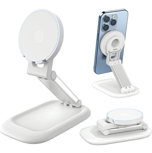 SODI BM-310 Magnetic iPhone & MagSafe & MacBook Dla serii iPhone 12 / 13 / 14 z MagSafe oraz MacBooków wydanych od 2017 r.   Uchwyt wielofunkcyjny z MagSafe Czy szukasz idealnego rozwiązania do swojego biurka? Magnetyczny stojak SODI BM-310 to coś, czego potrzebujesz. Zaprojektowany specjalnie dla iPhone'ów z funkcją MagSafe, ten elegancki uchwyt jest kompatybilny z ładowarką indukcyjną Apple MagSafe. Oferując solidne, magnetyczne połączenie, zapewnia stabilność i wygodę podczas pracy. Ponadto uchwyt możesz dowolnie zakładać i zdejmować w razie potrzeb, gdyż montaż nie jest na stałe, dzięki mocowaniu MagSafe. *Przedmiotem sprzedaży jest sam uchwyt, pozostałe akcesoria widoczne na zdjęciach służą jedynie przedstawieniu jego funkcjonalności. Kolor producenta: White (biały)     iPhone jako web-kamera do MacBooka Zamień swojego iPhone'a z MagSafe w kamerę internetową dzięki zaawansowanemu systemowi aparatu iPhone'a i funkcjom Continuity Camera w najnowszym systemie macOS. Dzięki specjalnie zaprojektowanemu uchwytowi z powodzeniem zamontujesz go na klapie swojego MacBooka, a mocowanie MagSafe dla iPhone'a pozwala na łatwe dostosowanie smartfona między orientacją pionową lub poziomą. Wykorzystaj w pełni aparat iPhone'a, używając go do nawiązywania jeszcze lepszej jakości połączeń wideo bez dodatkowego sprzętu czy narzędzi. To doskonałe uzupełnienie Twojego ekosystemu Apple, które ulepszy jego użytkowanie i pozwoli lepiej wykorzystać jego funkcje.       Zwiększ swoje możliwości z MagSafe konstrukcja podstawki umożliwia łatwą wymianę płyty magnetycznej na ładowarkę indukcyjną MagSafe, co sprawia, że ładowanie urządzenia nigdy nie było prostsze. Teraz możesz ładować swojego iPhone'a w trakcie pracy, nie martwiąc się o kabelki i niskie poziomy baterii. Komfort i wygoda użytkowania sprawiają, że uchwyt to akcesorium, które musi znaleźć się w Twoim arsenale. Ładowarka MagSafe nie jest dołączona do zestawu!     Funkcjonalna budowa Dzięki przemyślanej budowie i rozkładanym elementom nie ma potrzeby ingerowania w montaż za pomocą żadnych klejów, ani żadnych dodatkowych elementów, itp. Uchwyt zakładasz lub zdejmujesz kiedy chcesz, bez wpływu na funkcjonalność iPhone'a jak i MacBooka. Łatwo dostosuj pozycję telefonu i podnieś wysokość do 8 cm, aby uzyskać wygodny kąt widzenia. Ten ergonomiczny stojak na telefon komórkowy zmniejsza obciążenie szyi i pleców.