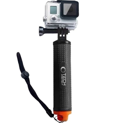 Tech-Protect GA100 Float Hand Grip GoPro, DJI Wodoodporny i stabilny uchwyt do kamer Tech-Protect GA100 Float Hand Grip, pozwala na bezpieczne nagrywanie kamerami sportowymi GoPro i DJI z zachowaniem stabilności w wodzie jak i na lądzie. Konstrukcja wypornościowa uchwytu utrzymuje go nad powierzchnią wody. Rączka ze smukłą budową i antypoślizgowymi właściwościami to pewność, że nie wyślizgnie się z ręki. Mały schowek w środku uchwytu jest wodoodporny, więc idealnie nadaje się do trzymania w nim niewielkich przedmiotów. Dołączona smycz na nadgarstek daje jeszcze większą gwarancję bezpieczeństwa. Wymiary: 18,5 x 3 cm Kolor producenta: Black (czarny z pomarańczową końcówką) Przedmiotem sprzedaży jest uchwyt ze smyczą, pozostałe akcesoria widoczne na zdjęciach służą jedynie przedstawieniu funkcjonalności produktu. Stabilna, wypornościowa rączka ze schowkiem Ergonomiczny uchwyt wypornościowy z wodoszczelnym schowkiem wewnątrz jest akcesorium idealnym do nurkowania, ale też doskonale sprawdzi się na powierzchni. Schowek daje możliwość przechowywania w nim drobnych przedmiotów jak klucze, czy gotówka. Wysoka kompatybilność uchwytu ze smyczą Aluminiowy uchwyt z antypoślizgową powierzchnią jest lekki, a przy tym wytrzymały. Kompatybilność uchwytu z większością kamer sportowych zapewnia jego uniwersalność. Dodatkowa smycz na rękę to jeszcze większa gwarancja bezpieczeństwa i stabilności nawet w trudnych warunkach. Funkcjonalny uchwyt do nagrywania Precyzyjnie wykonany uchwyt Tech-Protect o eleganckim designie to praktyczne i funkcjonalne akcesorium, które pozwala rejestrować niezapomniane chwile z wycieczek. Końcówka uchwytu w jaskrawym kolorze pozwala na proste zlokalizowanie go na powierzchni wody, ale też na lądzie.