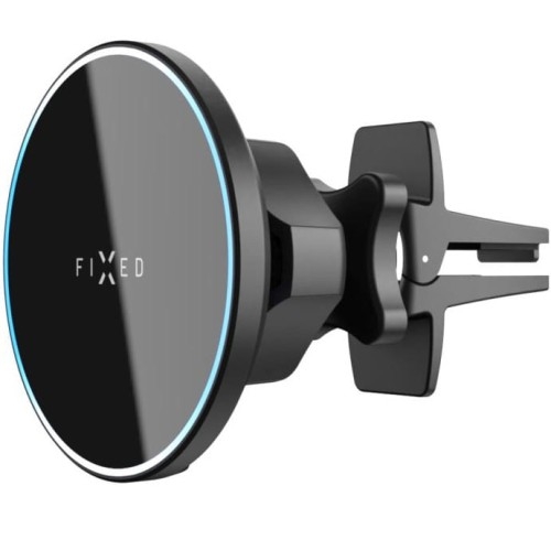 Uchwyt Fixed MagRound Do kratki nawiewu / Apple iPhone 12 i nowsze   Magnetyczne Ładowanie MagSafe Oto FIXED MagRound – magnetyczny uchwyt samochodowy, który uczyni Twoje podróże jeszcze wygodniejszymi. Zaprojektowany specjalnie dla telefonów iPhone z technologią MagSafe, uchwyt automatycznie łączy się z telefonem, gdy tylko go przyłożysz, rozpoczynając bezprzewodowe ładowanie. Możesz być pewien, że Twój telefon będzie zawsze bezpiecznie przymocowany, nawet podczas jazdy po wyboistych polskich drogach! Mocowanie do kratki wentylacyjnej samochodu za pomocą klipsów z haczykiem Ładowanie z mocą do 15 W (iOS max. 7,5 W) Ekstra cienka powierzchnia uchwytu Minimalistyczny design LED oświetlenie wokół uchwytu 360° obrotowy przegub dla idealnego kąta widzenia Łatwe sterowanie jedną ręką Port ładowania USB-C Średnica uchwytu: 5,8 cm W zestawie: magnetyczny uchwyt Fixed MagRound, kabel USB-C, klips do kratki nawiewu, instrukcja.       Bezpieczne i pewne mocowanie telefonu Z FIXED MagRound Twój telefon będzie bezpiecznie przymocowany nawet podczas najbardziej wyboistych podróży. Klipsy z haczykiem łatwo montują uchwyt do wentylacji samochodu, a obrotowy przegub 360° pozwala na ustawienie idealnego kąta widzenia. Proste, szybkie i bezpieczne!         Elegancki minimalizm i oświetlenie LED Minimalistyczny design i czarne, metalowe wykończenie sprawiają, że FIXED MagRound wygląda elegancko w każdym wnętrzu auta. Dodatkowo, subtelne oświetlenie LED wokół uchwytu dodaje nowoczesnego akcentu, czyniąc Twoją podróż jeszcze bardziej stylową. Uchwyt FIXED MagRound jest kompatybilny z etui i pokrowcami MagSafe, zapewniając pełen dostęp do przycisków i złącz Twojego telefonu. Zintegrowane zabezpieczenia przed przegrzaniem, zwarciem i przepięciem gwarantują, że Twój telefon będzie bezpieczny w każdych warunkach.      Specyfikacja Wiemy, że liczby mają znaczenie. Oto one: Wejście: DC 9V/1.5A-2.5A, 5V/1.5A Wyjście: 5W, 7.5W, 10W, 15W max. 16 magnesów N52 Materiał: ABS, stop cynku, szkło hartowane Wymiary: 5,8 x 3 x 5,8 cm Waga: 54 g Port ładowania: USB-C  Z FIXED MagCool Twoje urządzenie jest zawsze stabilne i naładowane – gotowe na każdą przygodę!