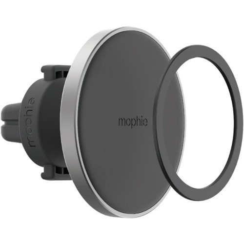 Uchwyt Mophie Snap Vent Mount - MagSafe Uniwersalny / do kratki nawiewu / kompatybilny z MagSafe   Magnetyczny uchwyt samochodowy Uchwyt magnetyczny Snap Vent Mount od Mophie przeznaczony do montażu w samochodowej kratce nawiewu. W pełni kompatybilny z Apple MagSafe i serią iPhone 12. Dodatkowo uchwytu możesz używać także z wcześniejszymi seriami Apple iPhone, jak również z innymi markami telefonów, naklejając na nie (lub na ich etui) dołączony pierścień samoprzylepny, który nie zakłóca ładowania bezprzewodowego w modelach obsługujących Qi.  Kolor producenta: Black (czarno-srebrny)       Łatwa obsługa Montaż samego uchwytu jest niezwykle prosty i zajmuje mało czasu. Wystarczy włożyć zaczep do kratki nawiewu w samochodzie. Wbudowany magnes kompatybilny z MagSafe zapewnia stabilność kompatybilnym urządzeniom, zapewniając mocne przyciąganie. Niski profil instalacji zapewnia dobrą widoczność podczas jazdy, nie wpływając na pole widzenia kierowcy. Minimalistyczna i kompaktowa budowa świetnie sprawdzi się w każdym samochodzie.         MagSafe nie tylko dla iPhone'a 12 Dzięki kompatybilności z MagSafe uchwyt zaraz po montażu jest gotowy do użytku ze smartfonami wspierającymi to rozwiązanie. Dla wszystkich innych modeli Mophie dołączyło samoprzylepny pierścień metalowy, do naklejenia na plecki lub etui, co sprawi, że będzie można ich używać z uchwytem w taki sam sposób. Zatem nawet jeśli Twój smartfon obsługuje ładowanie indukcyjne nie musisz się obawiać, gdyż pierścień dzięki swojej budowie nie zakłóca przesyłania sygnału bezprzewodowego Qi. Dzięki Mophie to sprytne i proste rozwiązanie nie musi się ograniczać tylko do najnowszych smartfonów Apple.