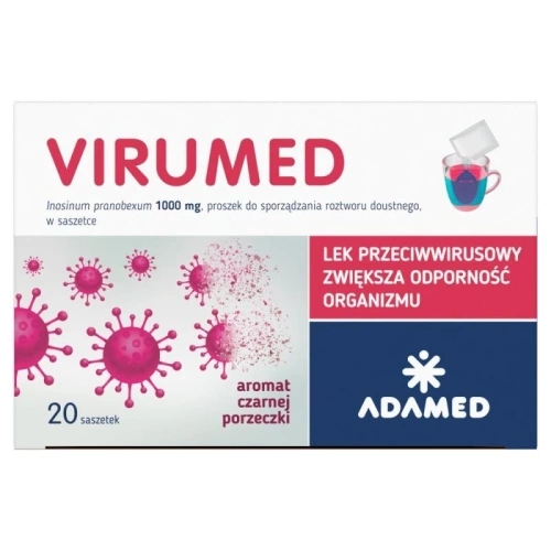 Produkt leczniczy Virumed 1000mg proszek do sporządzania zawiesiny doustnej to lek przeciwwirusowy, który zwiększa też odporność organizmu. Wskazaniem do stosowania leku jest m.in. wsparcie dla osób dorosłych z obniżoną odpornością.