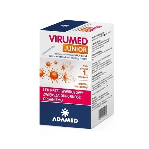 Produkt leczniczy Virumed Junior proszek do sporządzania zawiesiny doustnej zawiera jako substancję czynną inozyny pranobeks. Lek stanowi wsparcie organizmu u osób o obniżonej odporności, w przypadku nawracających infekcji górnych dróg oddechowych.