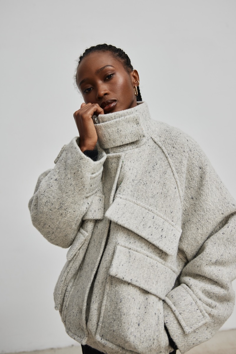 Luksusowa kurtka WHISPER to esencja elegancji i wygody. Wykonana z najwyższej jakości wełny alpaki, ta unikalna kurtka doskonale łączy w sobie styl i funkcjonalność. Zamykana na solidny zamek błyskawiczny który posiada dodatkową listwę kryjącą , uszytą z tego samego materiału , chroni przed zimnem w najbardziej wymagające dni. Wysoki kołnierz dodaje kurtce szyku, a ozdobne klapy z przodu nadają jej wyjątkowego charakteru. Dwie duże kieszenie z przodu nie tylko są praktyczne, ale także nadają kurtce subtelnego uroku. Rękawy wykończone ozdobnymi mankietami podkreślają detale, dodając nutę luksusu. Tył kurtki utrzymany jest w gładkim, eleganckim stylu. Ta kurtka nie tylko zachwyca swoim designem, ale także zapewnia niezrównaną ciepło. Idealna do noszenia w chłodniejsze dni, jest doskonałym wyborem dla tych, którzy cenią wygodę i styl. Świetnie komponuje się z jeansami i botkami na co dzień, a także może być eleganckim uzupełnieniem wieczorowej kreacji. Dzięki niej każdy zimowy dzień stanie się modną przygodą. Modelka ma 169cm wzrostu i prezentuje rozmiar UNI. Skład : 67% Wełna, 21% Wełna z Alpaki , 12% Nylon ZALECANA PIELĘGNACJA: