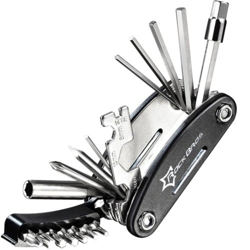 Wielofunkcyjne narzędzie, zestaw kluczy Rockbros GJ8002 Uniwersalne Niezastąpiony towarzysz każdej rowerowej przygody Wielofunkcyjny zestaw narzędzi zrewolucjonizuje Twoje rowerowe wyprawy. Wyposażony w 16 różnych narzędzi, ten kompaktowy multitool pozwoli Ci na szybkie i łatwe naprawy w terenie. Niezależnie od tego, czy musisz dokręcić śrubę, czy wyregulować hamulce, Rockbros GJ8002 ma wszystko, czego potrzebujesz. Przedmiotem sprzedaży jest sam wielofunkcyjny zestaw kluczy, pozostałe akcesoria widoczne na zdjęciach służą jedynie przedstawieniu jego funkcjonalności. Wielofunkcyjność na najwyższym poziomie Z tym zestawem zyskujesz znacznie więcej niż tylko pojedyncze narzędzia. Ten praktyczny multitool oferuje aż 16 różnych funkcji, w tym klucz nasadowy z zestawem 7 nasadek, śrubokręt krzyżakowy, śrubokręt płaski, zestaw 3 kluczy płaskich, oraz 6 kluczy imbusowych. Każde z tych narzędzi zostało starannie wykonane z wytrzymałej stali węglowej, zapewniając długowieczność i niezawodność. Niezawodna jakość Rockbros Multitool wyróżnia się wyjątkową trwałością i odpornością na uszkodzenia. Dzięki starannemu wykonaniu oraz użyciu najlepszych materiałów, ten multitool jest odporny na rdzę i zużycie, co czyni go idealnym wyborem dla każdego rowerzysty. Kompaktowy i przenośny Ten zestaw kluczy jest nie tylko wszechstronny, ale także niezwykle przenośny. Dzięki temu zawsze będziesz przygotowany na wszelkie niespodziewane sytuacje podczas swoich rowerowych wypraw. Kupując wielofunkcyjne narzędzie, inwestujesz w wygodę, niezawodność i trwałość. To idealny towarzysz każdej rowerowej przygody. Specyfikacja: Waga: ok. 222g Wymiary: 4 x 9 cm Materiał: stal węglowa Zestaw zawiera: 7 nasadek (PH2, T30, T27, T25, T20, T15, T10) Śrubokręt krzyżakowy i płaski Zestaw 3 kluczy płaskich (8, 10, 15mm) 6 kluczy imbusowych (1, 2, 3, 4, 5, 10mm)