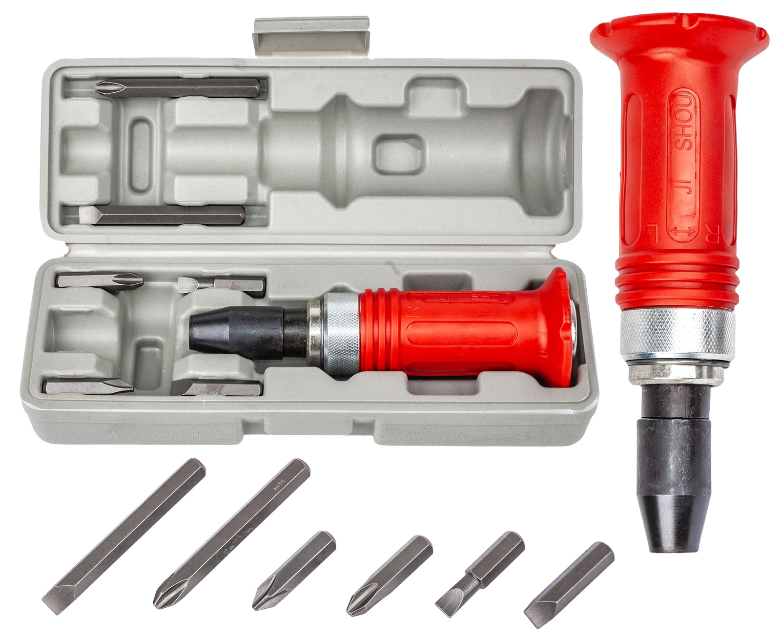 Wkrętak przekładający energię kinetyczną wytworzoną podczas uderzenia np. młotkiem, na ruch obrotowy głowicy.