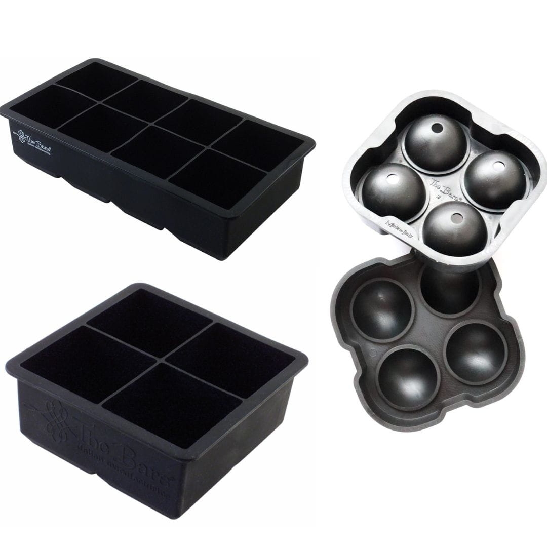 Zestaw 3 foremek do lodu, do whisky, lodowe sześciany i kule - eleganckie i efektowne kostki lodu Zestaw 3 foremek do lodu zapewni Twoim drinkom niepowtarzalny wygląd! Zestaw składa się z: formy do lodu na 4 lodowe kule formy do lodu na 4 duże lodowe sześciany formy do lodu na 8 lodowych sześcianów średniej wielkości Lodowe kule będą wyglądać wspaniale nie tylko w drinkach podawanych w niskim szkle, ale również w Aperol Spritz oraz innych drinkach serwowanych w dużych kieliszkach czy pucharkach. Duże lodowe sześciany oraz lodowe sześciany średniej wielkości nadadzą rewelacyjny wygląd Whisky Sour, Negroni oraz innym drinkom serwowanym w niskich szklankach. Każdy z tych trzech typów kostek lodu będzie wyglądał znakomicie podczas serwowania czystego alkoholu na lodzie, a więc tak popularnego Whisky on the rocks. W galerii zdjęć możesz zobaczyć jak wyglądają drinki z wykorzystaniem kostek lodu zrobionych w tych foremkach. Warto to zrobić, będziesz pod wrażeniem! Twoje drinki mogą wyglądać tak samo! Zestaw 3 foremek do lodu, do whisky, lodowe sześciany i kule - wygodny i praktyczny Mając w zamrażarce te 3 formy do lodu, na jednej imprezie możesz zrobić aż 16 drinków i każdy z nich będzie wyglądał wspaniale. Jest to bardzo wygodne rozwiązanie, dużo łatwiej i szybciej jest stosować duże kostki lodu, zamiast za każdym razem wyciągać z foremek wiele małych kostek. Warto podkreślić też, że zaletą korzystania z dużych kostek lodu jest to, że wolniej rozpuszczają się one w drinkach, dzięki czemu dłużej chłodzą napój nie rozwadniając go. Jest to szczególnie ważna zaleta w ciepłe, wiosenne, letnie i jesienne dni! Zestaw 3 foremek do lodu, do whisky, lodowe sześciany i kule - wysoka jakość w dobrej cenie Foremki wykonane są przez włoskiego producenta wysokiej jakości sprzętu barmańskiego, z elastycznego tworzywa, dzięki czemu łatwo jest wyciągać poszczególne kostki. W przeciwieństwie do wielu tanich, chińskich foremek do lodu, materiał nie wydziela nieprzyjemnego zapachu. Warto podkreślić, że decydując się na zakup 3 foremek w zestawie oszczędzasz pieniądze. Zestaw 3 foremek do lodu, do whisky, lodowe sześciany i kule - cechy produktu Zestaw obejmuje 3 foremki do lodu Podana cena to cena za zestaw 3 foremek Korzystając z foremek można wykonać jednocześnie łącznie 16 kostek lodu w różnych kształtach Producentem foremek jest włoska firma produkująca sprzęt barmański najwyższej jakości oraz przyjazna środowisku - wykorzystuje materiały podlegające recyklingowi. Kolor foremek: czarny Foremki można myć w zmywarce Foremki wykonane z elastycznego tworzywa Zestaw 3 foremek do lodu, do whisky, lodowe sześciany i kule - wymiary kostek lodu forma do lodu na 4 lodowe kule - średnica 1 kuli: 4,5 cm forma do lodu na 4 duże lodowe sześciany - wymiary 1 kostki: 5,7 x 5,7 x 5,7 cm forma do lodu na 8 lodowych sześcianów średniej wielkości - wymiary 1 kostki: 4,8 x 4,8 x 4,8 cm