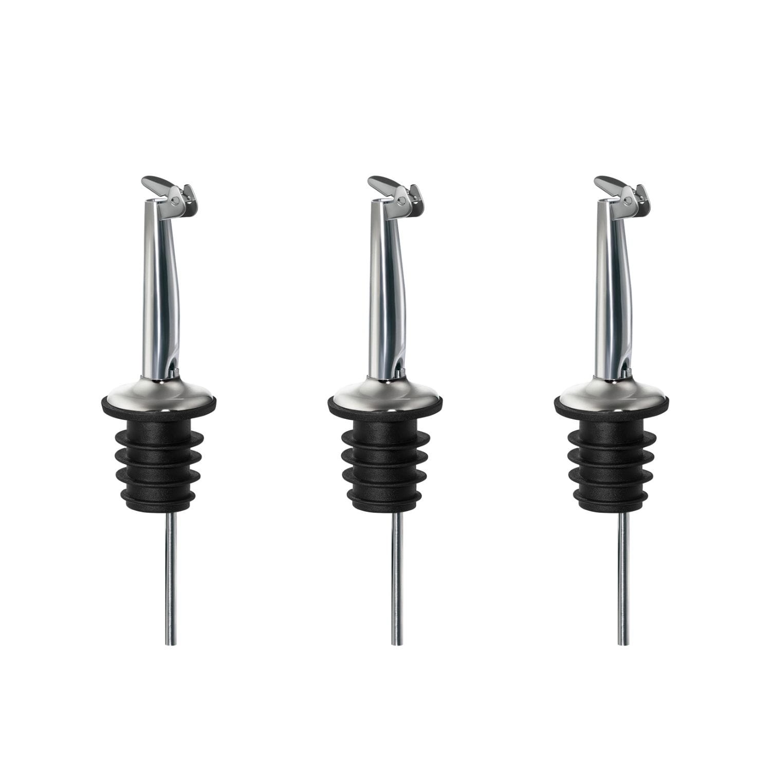 Zestaw 3 nalewaków do butelek metalowych z zamknięciem Zestaw 3 nalewaków do butelek metalowych z zamknięciem przyda się każdemu domowemu i profesjonalnemu barmanowi. Wystarczy włożyć nalewak w szyjkę butelki i nalewanie odpowiedniej ilości alkoholu będzie dużo prostsze.. Nalewak sprawia, że alkohol płynie z butelki wolniej. Dzięki temu: mamy lepszą kontrolę podczas nalewania - koniec z rozlewaniem i przelewaniem ponad kieliszek łatwiej zrobić drinki warstwowe - istotne jest, by kolejne warstwy wlewać powoli zachowujemy czystość - alkohol nie rozlewa się poza szklanki i kieliszki oszczędzamy alkohol - alkohol trafia tylko i wyłącznie tam, gdzie powinien Zestaw 3 nalewaków z zamknięciem wysokiej jakości Nalewaki do butelek są uniwersalne i pasują do niemal każdego typu butelki od 0,5 l, przez 0,7 l do 1 litra. Nalewaki posiadają praktyczne zamknięcie w formie klapki, dzięki czemu alkohol w butelce nie wchodzi w kontakt z powietrzem. Jest to produkt z oferty niemieckiego producenta akcesoriów barmańskich wysokiej klasy. Zestaw 3 nalewaków do butelek metalowych - cechy produktu nalewak zapewnia spowolnienie przepływu alkoholu z butelki, gumowy trzonek pasuje do większości butelek – 0,5 litra, 0,7 i 1 litr, solidna konstrukcja z elastycznego tworzywa i stali nierdzewnej, nalewaki posiadają praktyczne zamknięcie w formie klapki produkt z oferty niemieckiego producenta akcesoriów barmańskich dla profesjonalistów kolor: srebrno-czarny
