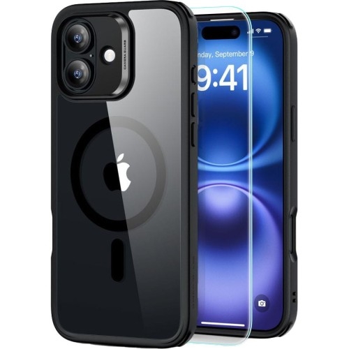 Opinie o Zestaw Etui + Szkło hartowane, ESR Classic Hybrid HaloLock, Tempered Glass do iPhone 16 Plus, do MagSafe, przezroczyste z czarną ramką