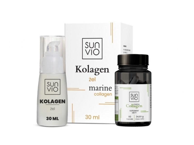 Poznaj kompleksowe wsparcie dla Twojej skóry, włosów i stawów! Zestaw SunVio łączy lekki żel kolagenowy do codziennej pielęgnacji oraz suplement diety z kolagenem morskim w kapsułkach – dla podwójnego efektu działania.