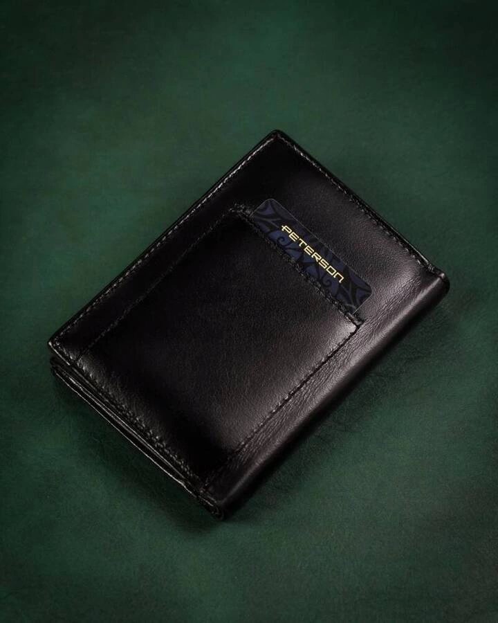 Portfel wykonany został ze skóry naturalnej. Model w orientacji pionowej bez zapięcia zewnętrznego. Mieści karty i dokumenty jak dowód osobisty i prawo jazdy, ale też dokumenty o większym formacie. Wyposażony w system RFID. W zestawie brelok.