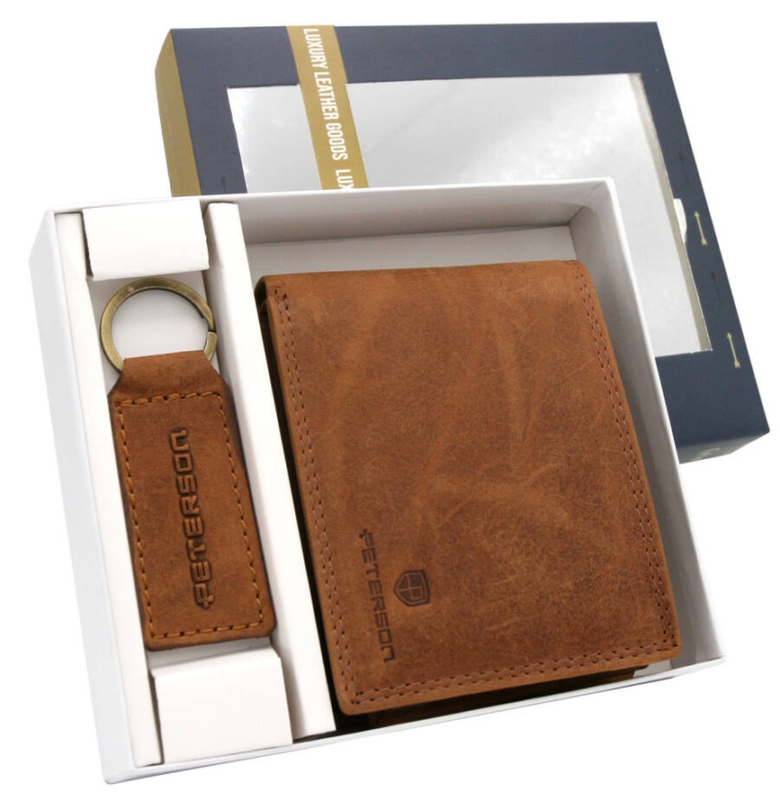 Portfel wykonany został ze skóry naturalnej nubukowej. Front zdobi tłoczone logo marki. Model w orientacji poziomej, bez zapięcia zewnętrznego. Wyposażony w technologię RFID BLOCKING SYSTEM. W zestawie wysokiej jakości elegancki brelok skórzany.