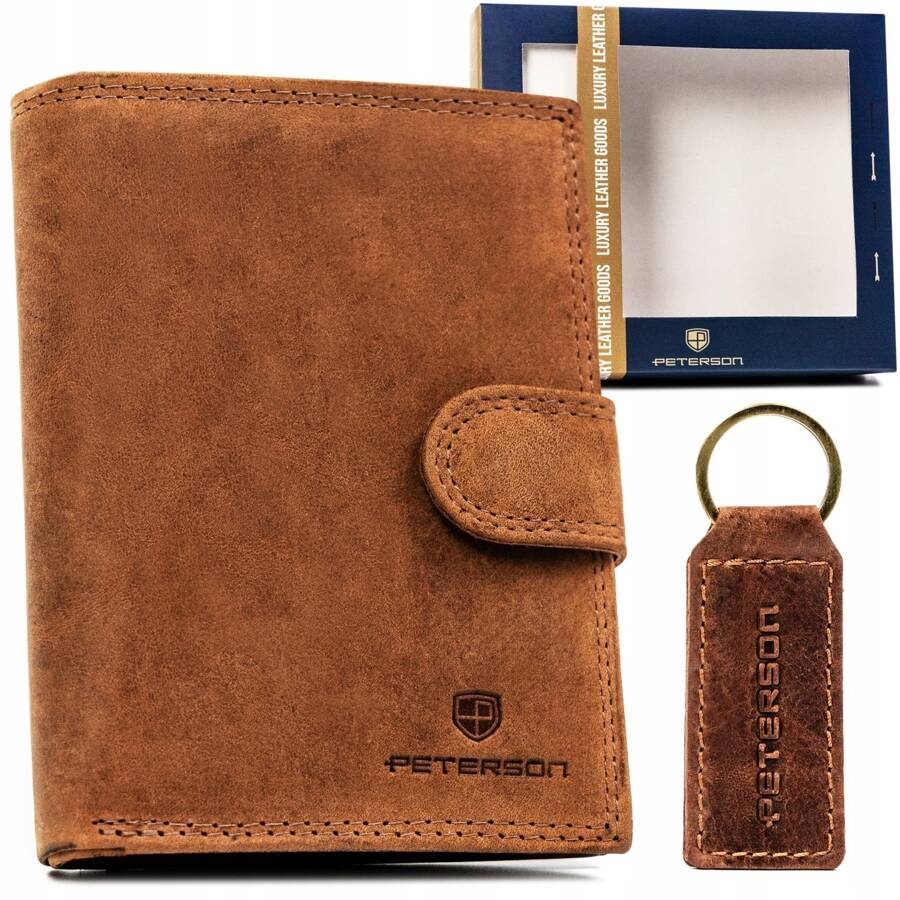 Stylowy zestaw upominkowy składający się z portfela oraz breloczka do kluczy wykonanych ze skóry naturalnej i zapakowanych w firmowe pudełko. Produkt polskiej marki, której zaufały tysiące klientów.