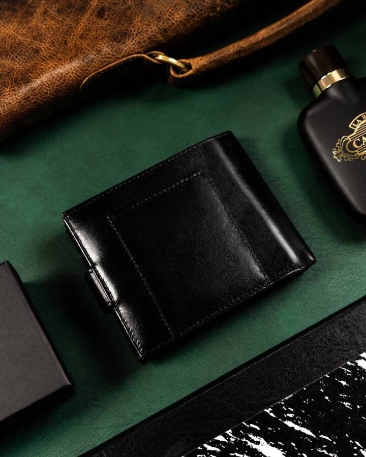 Portfel wykonany został z wysokiej jakości skóry naturalnej. Bez problemu mieści karty i dokumenty jak dowód osobisty czy prawo jazdy, ale też dokumenty o większym formacie. Wyposażony w technologię RFID BLOCKING SYSTEM. W zestawie stylowy brelok.