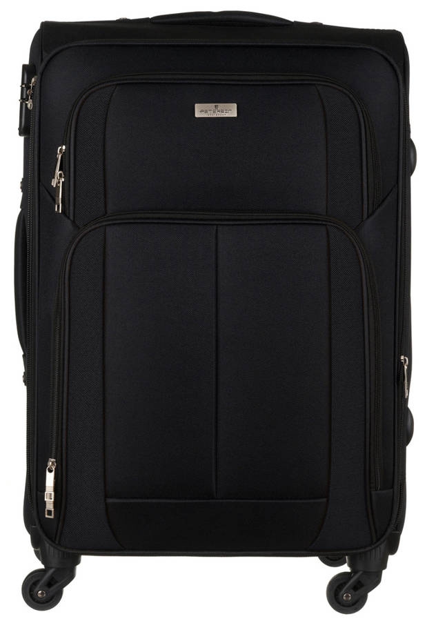 Zestaw trzech walizek podróżnych z miękkiego materiału. Walizki wyposażone w wygodne, teleskopowe rączki, wodoodporne adresowniki i ciche kółka. Wnętrza walizek zawierają elastyczne pasy zabezpieczające bagaż.