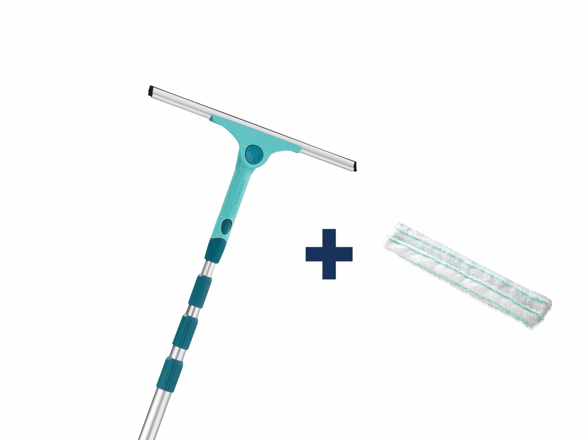 Wysokiej jakości Zestaw z teleskopową ściągaczką do szyb 2w1 to idealna pomoc w myciu szklanych powierzchni, szczególnie w bardzo wysokich i trudno dostępnych miejscach. Zestaw zawiera ściągaczkę 2w1 XL o szerokości 40 cm do mycia okien, która wygodnie leży w dłoni i dzięki pokrętłu nachylenia można ją łatwo dostosować do różnych kątów mycia. W połączeniu z ergonomiczną konstrukcją uchwytu, umożliwia to optymalne czyszczenie bez uciążliwych ruchów nadgarstka i gwarantuje błyskawiczne przywrócenie lśniącej czystości nawet w trudno dostępnych miejscach. Wysokiej jakości listwa silikonowa ściągaczki do szyb Leifheit myje idealnie bez smug i ma praktyczną krawędź ociekową, która zapobiega zamoczeniu uchwytu wodą – dzięki czemu Twoje ręce również pozostaną suche. Dołączony aluminiowy drążek teleskopowy z systemem Click Leifheit można bezstopniowo regulować w zakresie od 146 do 418 cm, aby uzyskać optymalną wysokość roboczą, co ułatwia mycie wyższych obszarów, takich jak ogrody zimowe, okna dachowe lub balkonowe panele fotowoltaiczne. Kolejną zaletą zestawu jest nakładka micro duo, która w mgnieniu oka przekształca ściągaczkę w wydajnego mopa. Technologia z dwoma rodzajami włókien zapewnia dokładne i łatwe mycie szklanych powierzchni, przy czym grubsze włókna usuwają uporczywe zabrudzenia, takie jak pyłki lub ptasie odchody, podczas gdy mikrowłókna skutecznie je pochłaniają. W ten sposób zestaw zawiera wszystko, co jest potrzebne do czyszczenia szklanych powierzchni na błysk. Wyjątkowo praktyczna: Listwa ściągająca jest dostępna jako oddzielna część zamienna i w razie potrzeby można ją łatwo wymienić.