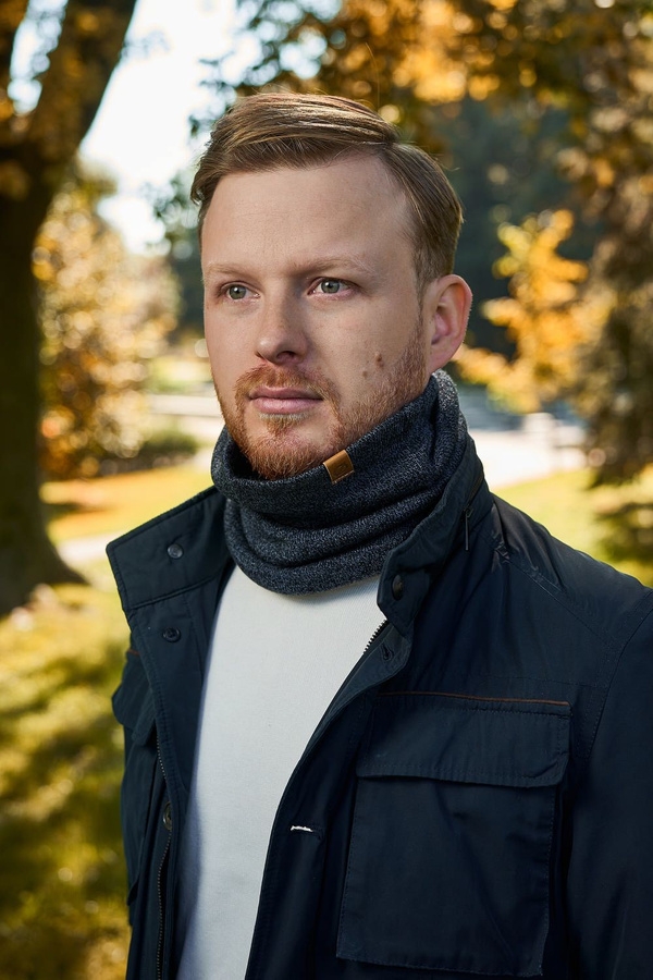 Męski, uniwersalny komin typu "tuba", zakładany na raz, w kolorze czarnym polskiej marki Brødrene. Prosty fason i uniwersalny kolor oraz minimum dodatków sprawiają, że komin utrzymuje przyjemne ciepło w chłodne, jesienne i zimowe dni doskonale się prezentuje.