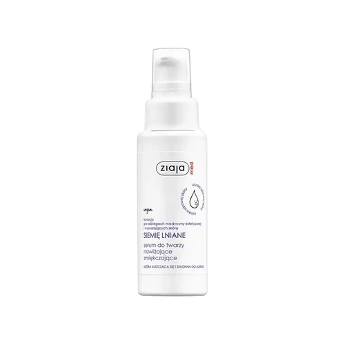 Ziaja Med Siemię Lniane Serum do twarzy nawilżające to kosmetyk, który sprawdzi się w pielęgnacji skóry łuszczącej się i skłonnej do alergii. Serum nawilża, zmiękcza i wspiera cerę po zabiegach medycyny estetycznej i kuracjach wysuszających skórę.